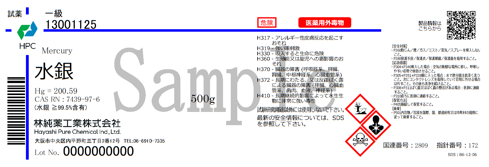 規格・用途:一級純度:≧99.5%CAS RN:7439-97-6分子式:Hg分子量:200.59