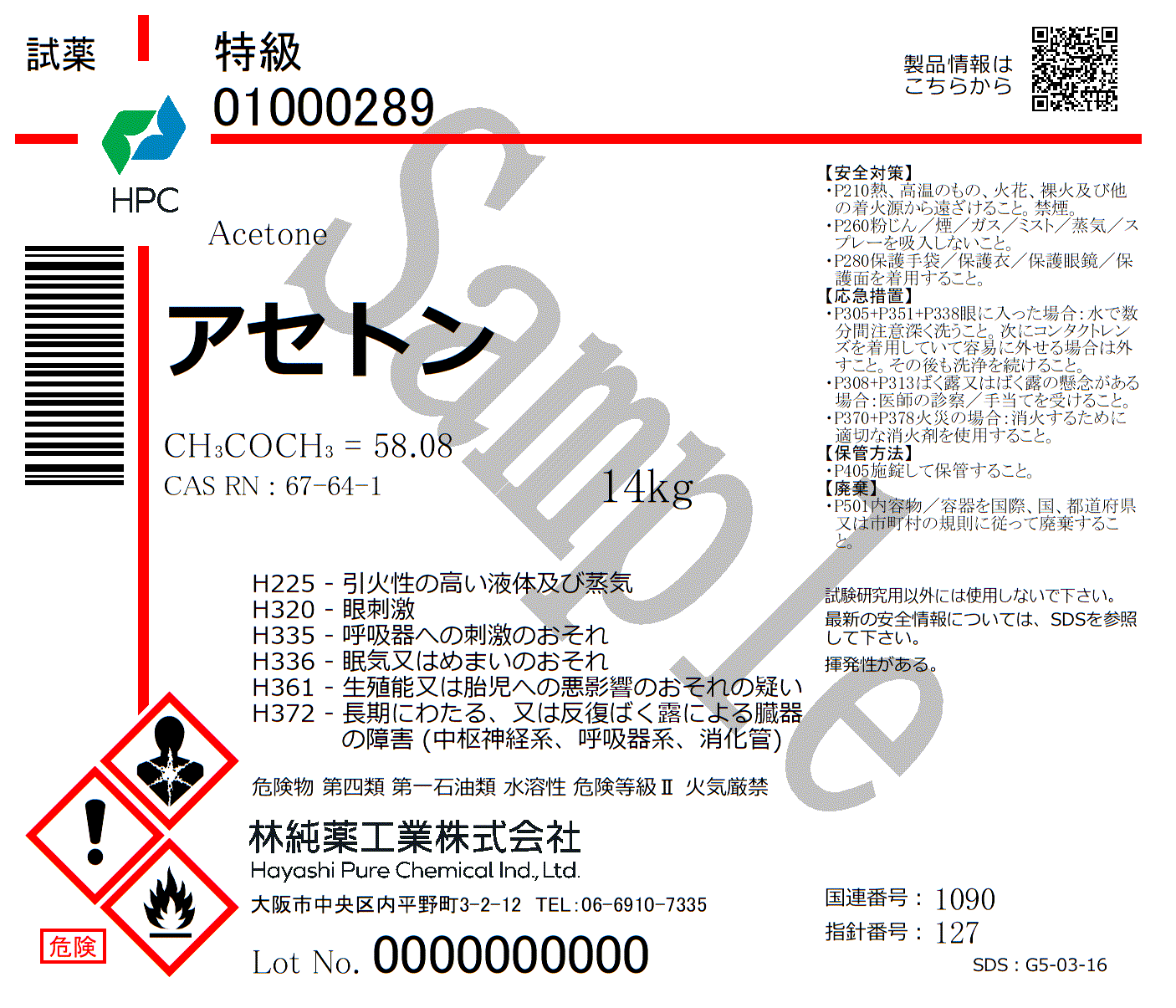 | 消防法(危険物) | 危険物第4類第一石油類(水溶性) |