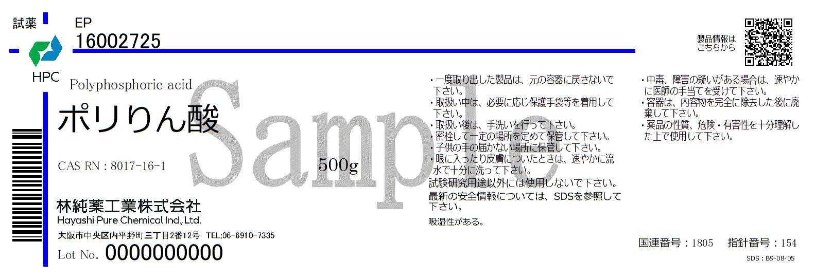 規格・用途:EP純度:116% (H3PO4として)CAS RN:8017-16-1分子式:Hn+2PnO3n+1分子量:---