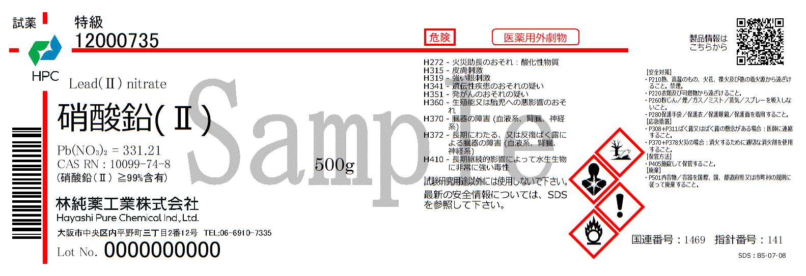 硝酸鉛(Ⅱ) 特級 (500g)