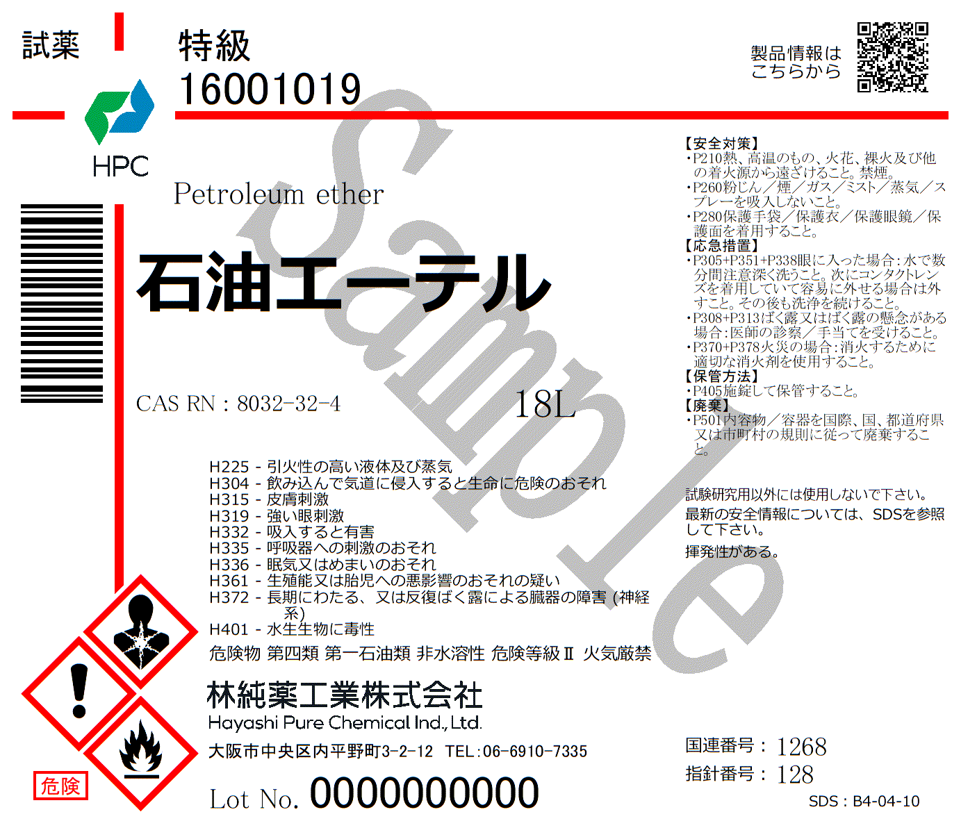 石油エーテル 特級 (18L)