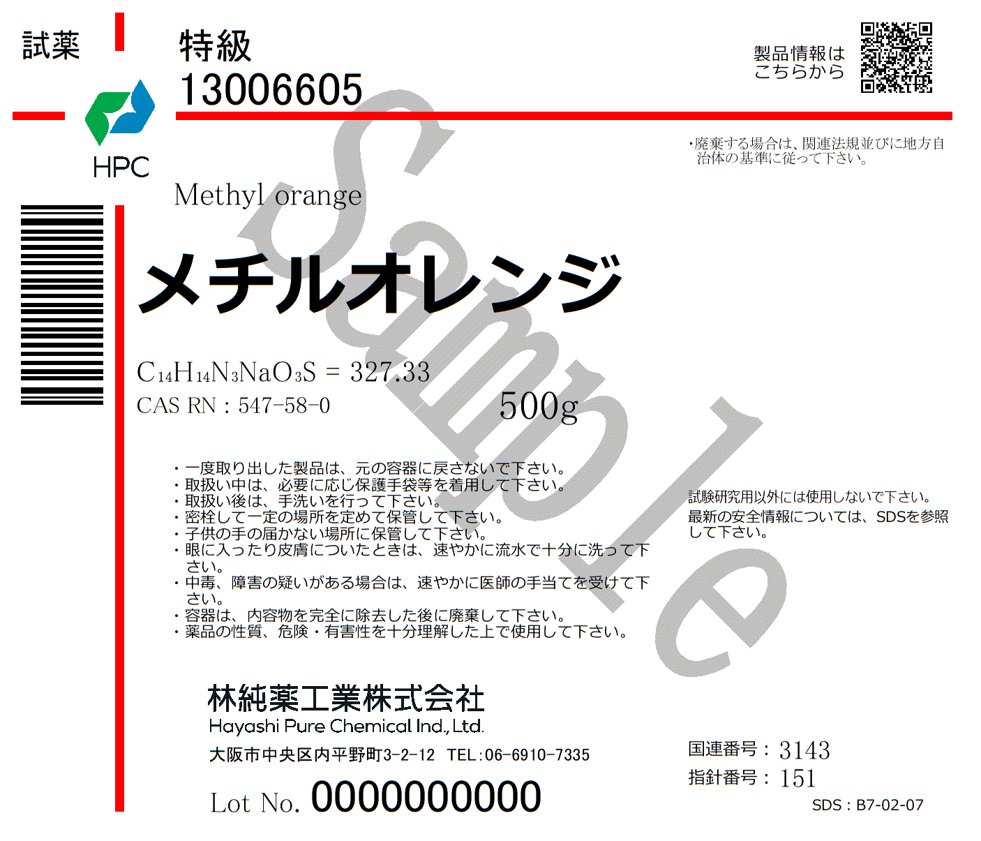 メチルオレンジ 特級 (500g)