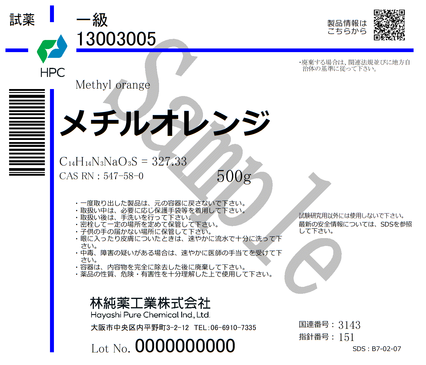 メチルオレンジ 一級 (500g)