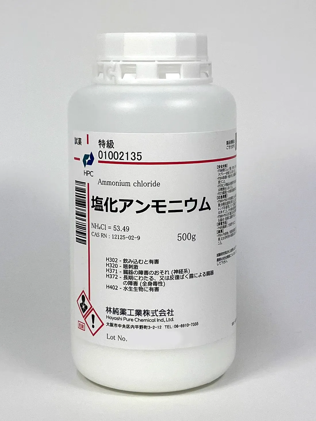 規格・用途:特級純度:≧99.5%CAS RN:12125-02-9分子式:NH4Cl分子量:53.49
