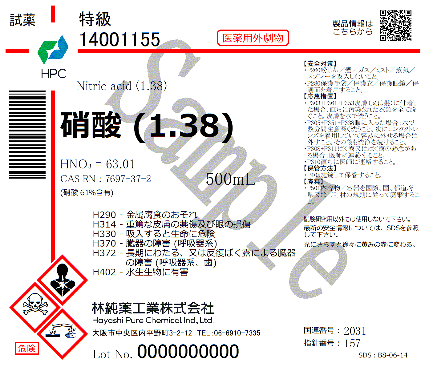 硝酸(1.38) 特級 (500mL)
