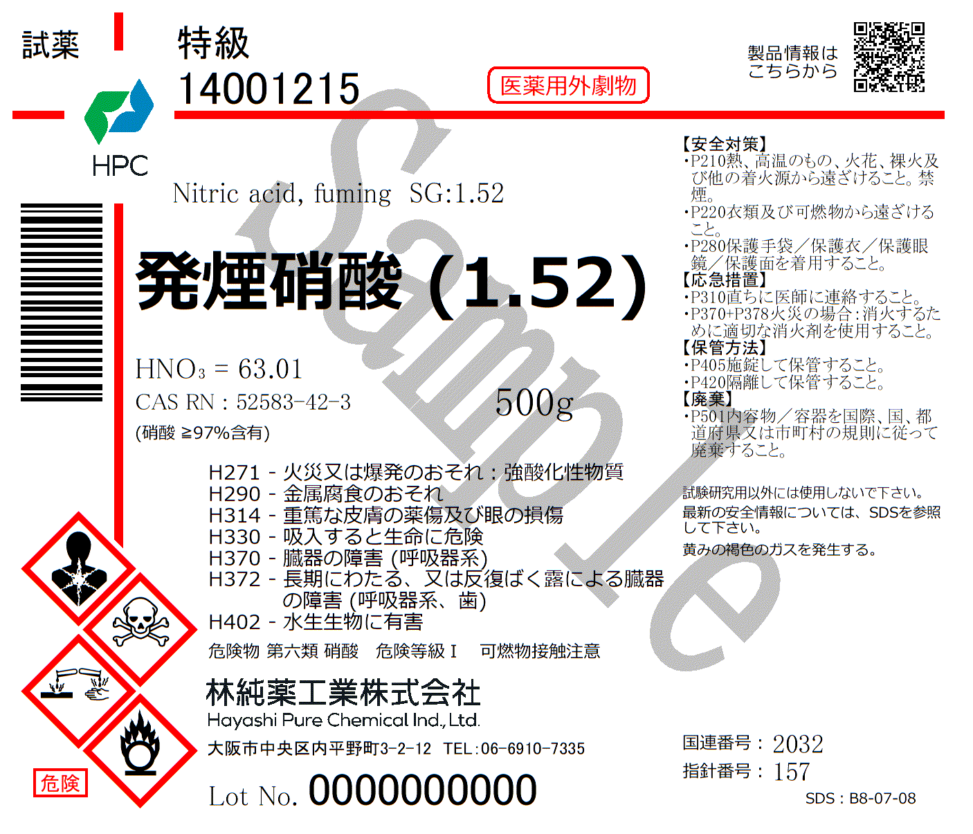 【英名】Nitric acid, fuming (1.52)