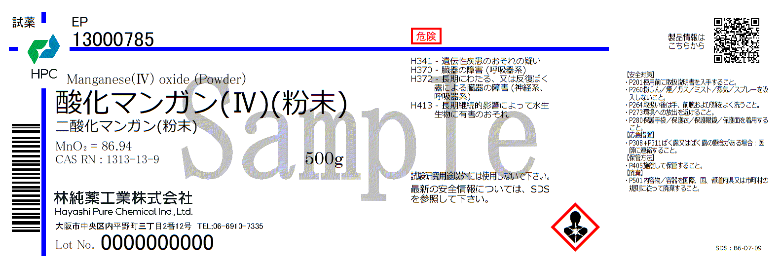 酸化マンガン(Ⅳ)(粉末) EP (500g)