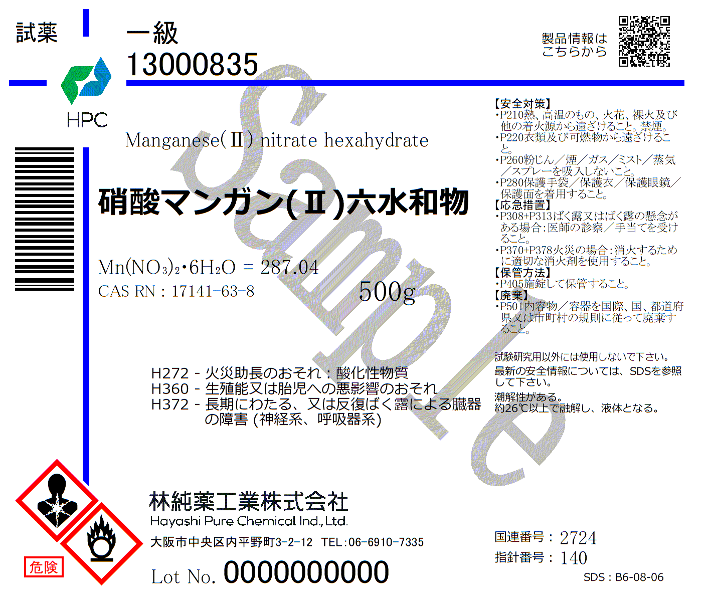 硝酸マンガン(Ⅱ)六水和物 一級 (500g)