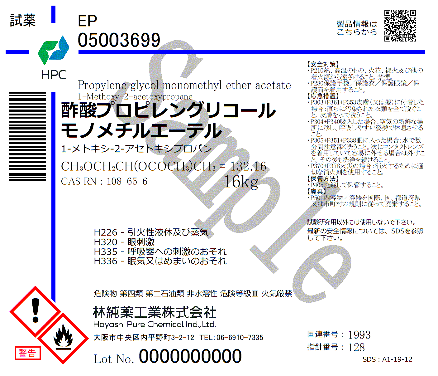 規格・用途:EP純度:≧99.5%CAS RN:108-65-6分子式:CH3OCH2CH(OCOCH3)CH3分子量:132.16
