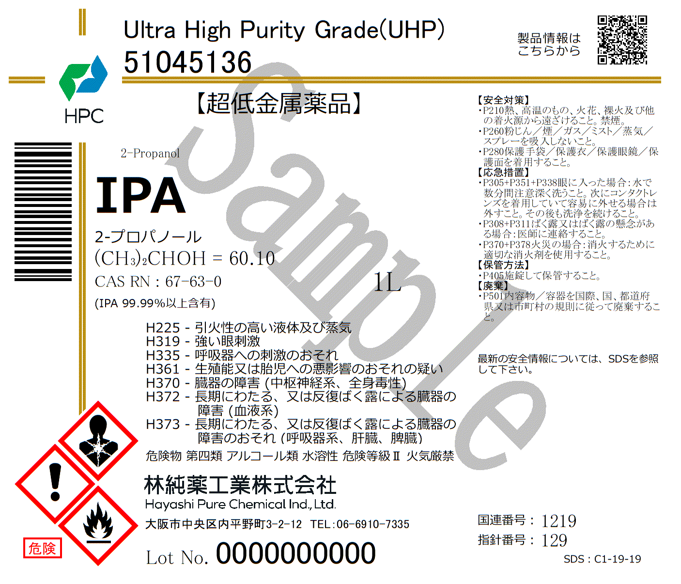 | 消防法(危険物) | 危険物第4類アルコール類 |