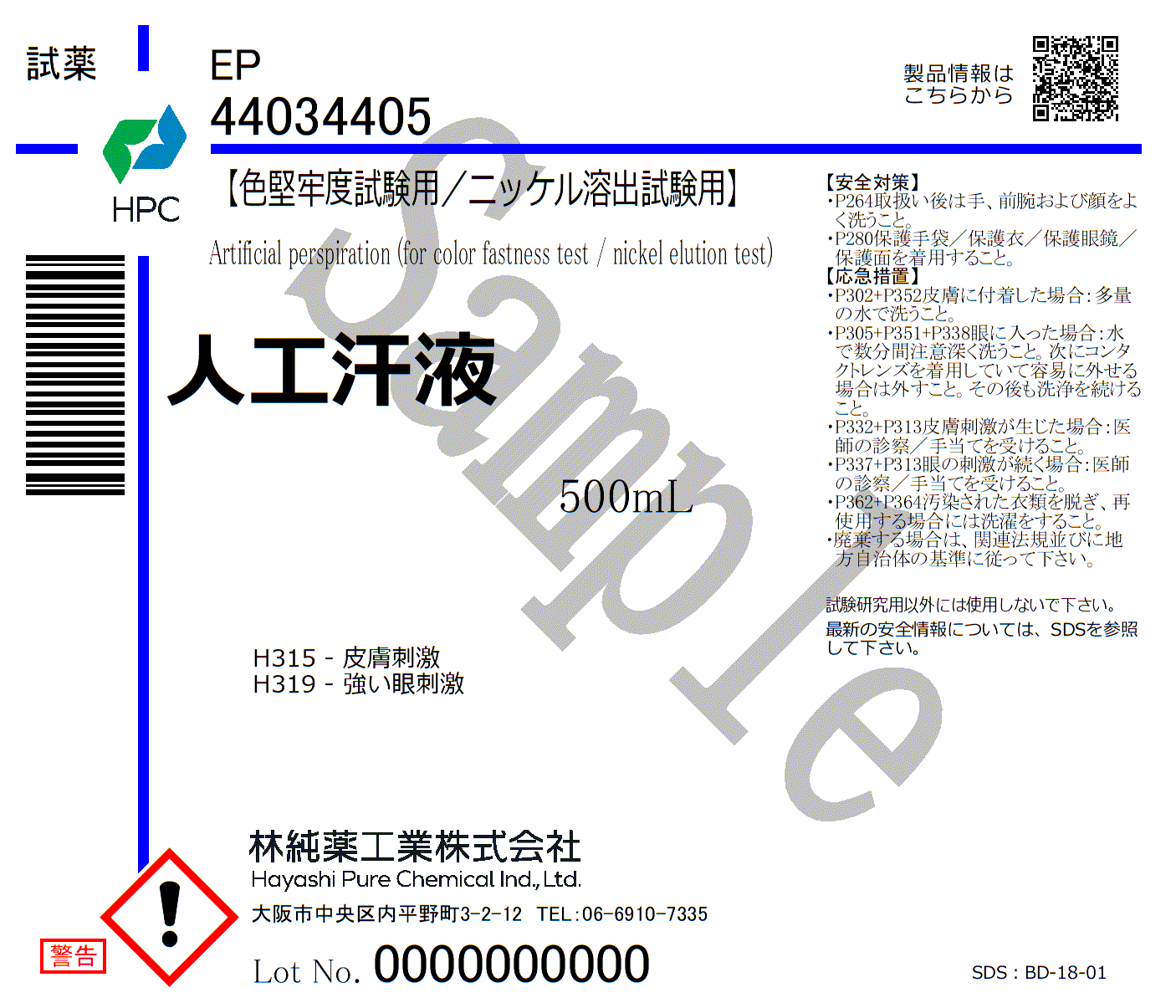 人工汗液(色堅牢度試験用/ニッケル溶出試験用) EP (500mL)