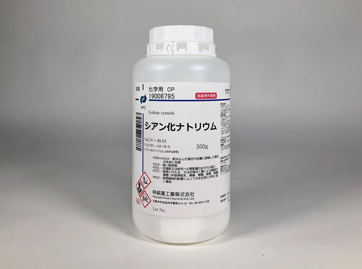| 使用上の注意 | 毒物のため、飲み込み、衣服、肌への付着に注意し、十分な排気の下で扱う。また有害で引火性のシアン化水素が発生するため、酸との接触を避けて扱う。 |