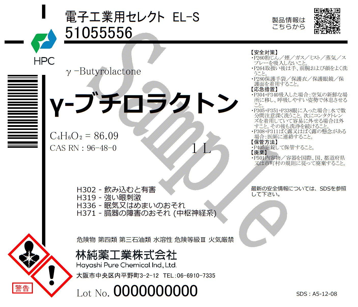 規格・用途:電子工業用セレクト EL-S純度:≧99.5%CAS RN:96-48-0分子式:C4H6O2分子量:86.09