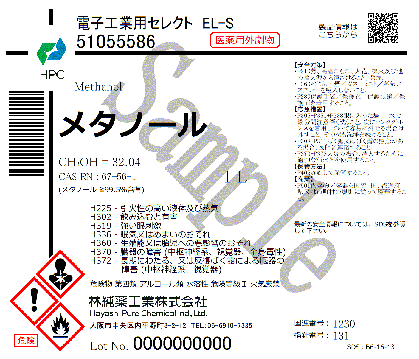【英名】Methanol / Methyl alcohol 【和名】メチルアルコール