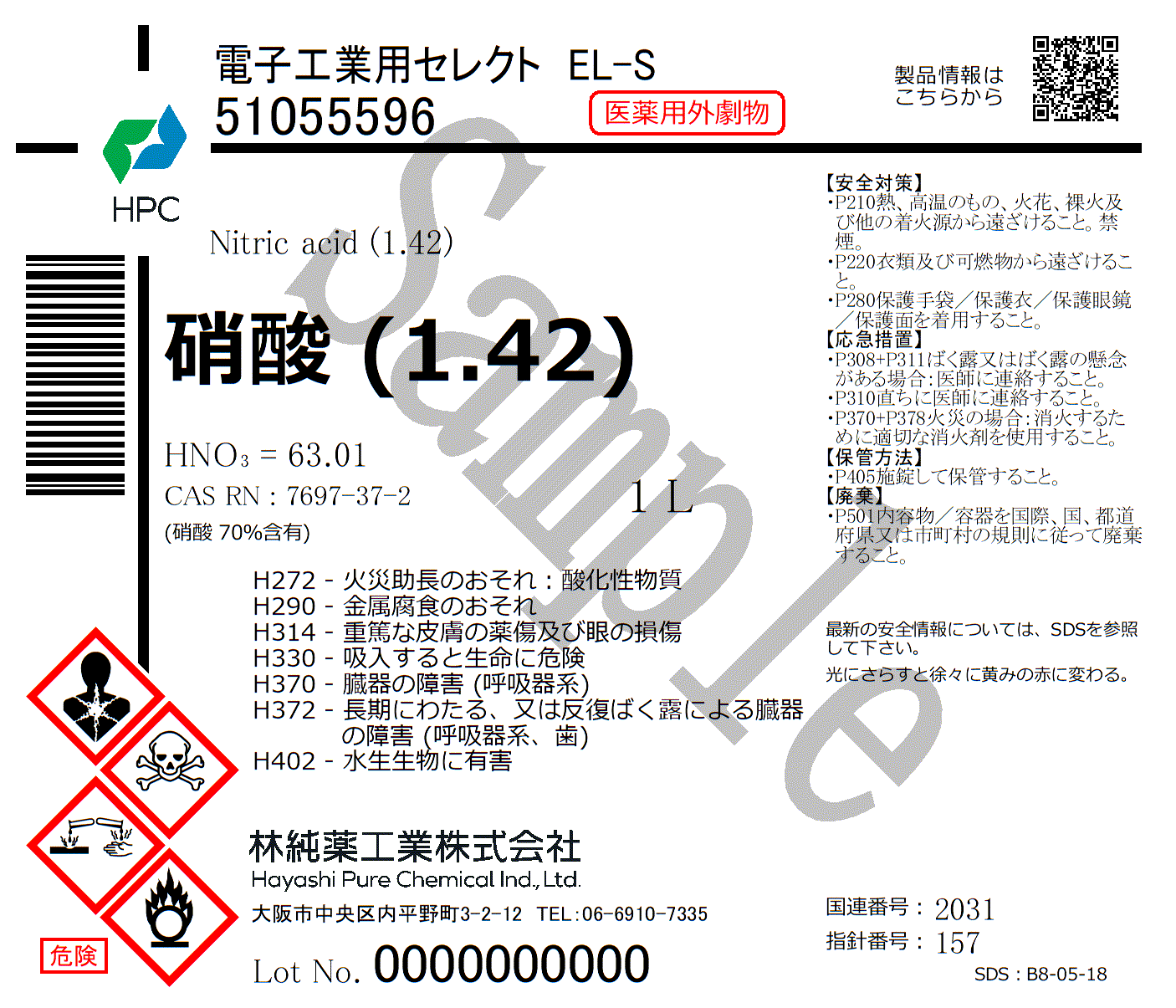 硝酸(1.42) 電子工業用セレクト EL-S (1L)