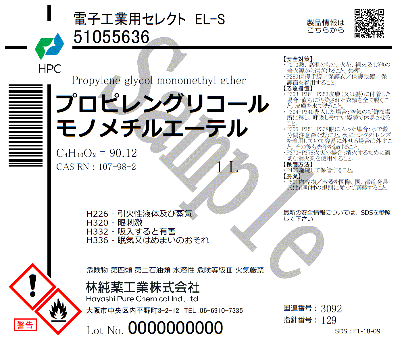 プロピレングリコールモノメチルエーテル 電子工業用セレクト EL-S (1L)