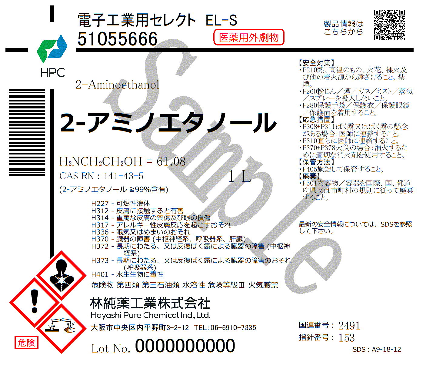 2-アミノエタノール 電子工業用セレクト EL-S (1L)