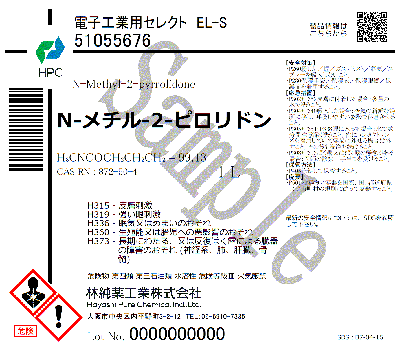 規格・用途:電子工業用セレクト EL-S純度:≧99.5%CAS RN:872-50-4分子式:CH3NC4H6O分子量:99.13