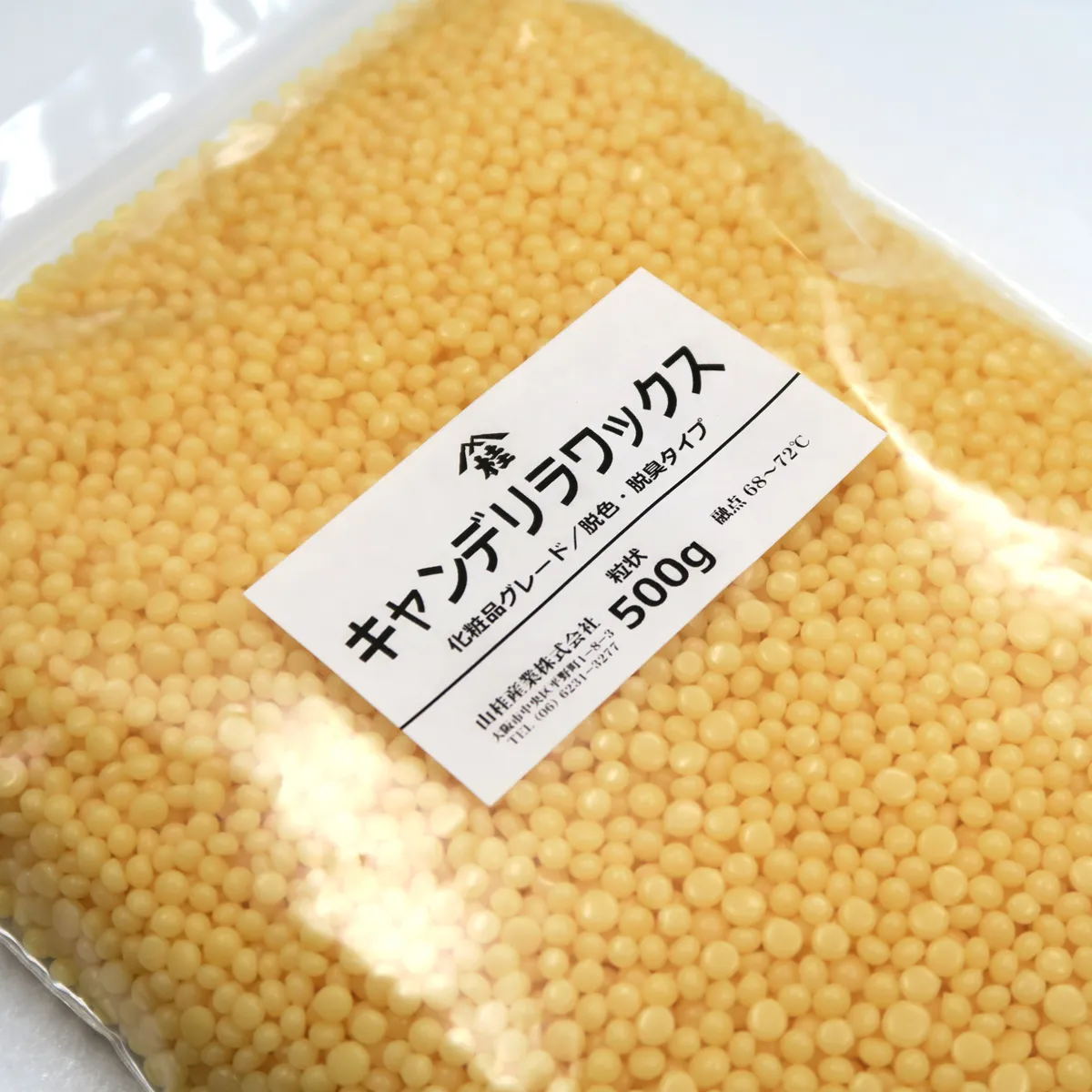 キャンデリラワックス 化粧品グレード/脱色・脱臭タイプ 粒状 (500g)